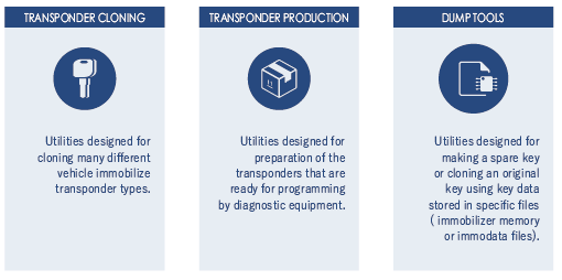Usually special chips are used for TRANSPONDER CLONING. Transponder cloning in most cases requires less time and does not require the factory transponder and additional equipment. Along with this, you can also use special transponders with any software options that require a factory transponders, such as TRANSPONDER PRODUCTION or DUMP TOOL.