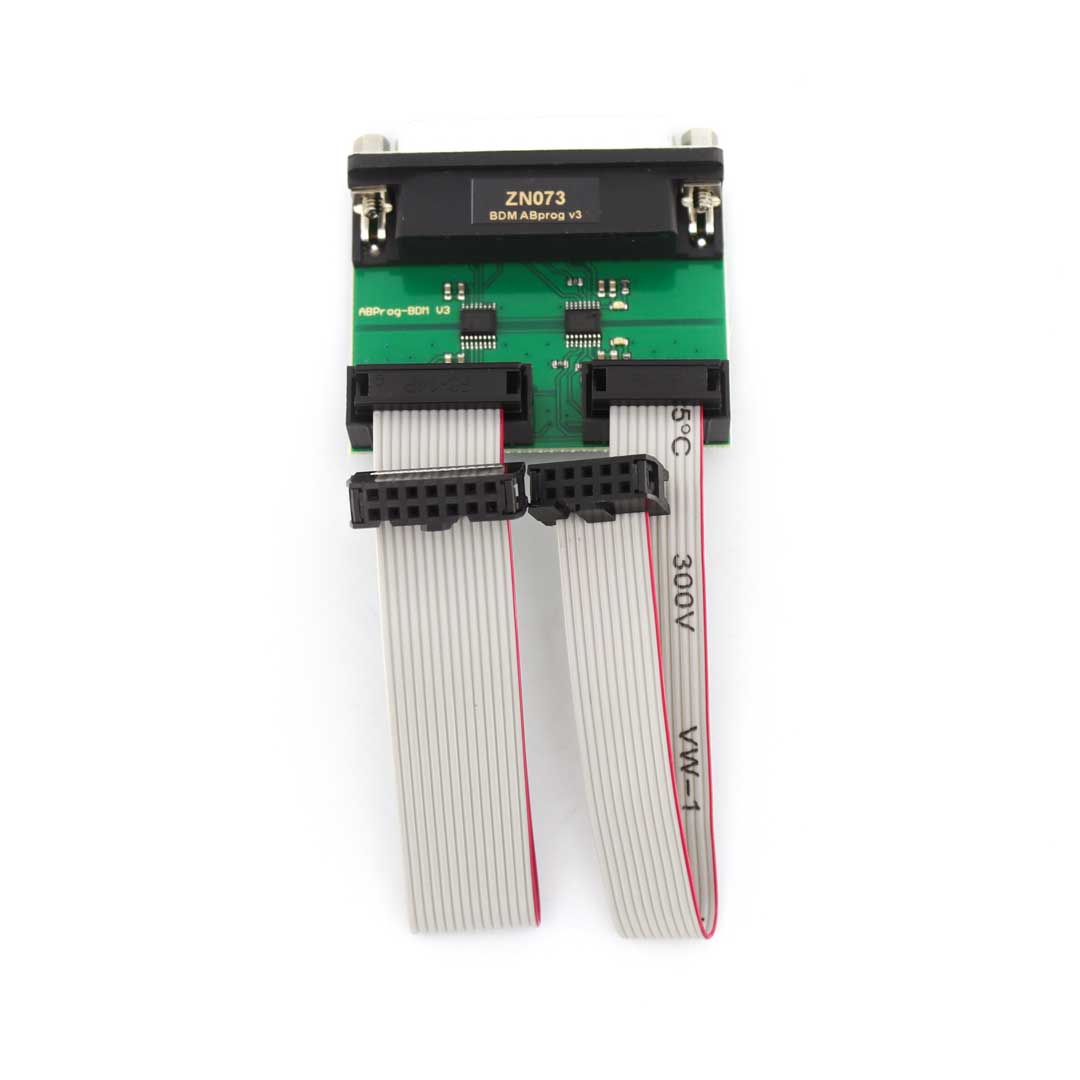 The ZN073 BDM Programmer is an adapter that is connected to the ZN030 ABPROG Programmer and cannot be used individually. It allows reading/writing of PFlash and DFlash of EDC16XX, MED9.X and other ECUs on bench.