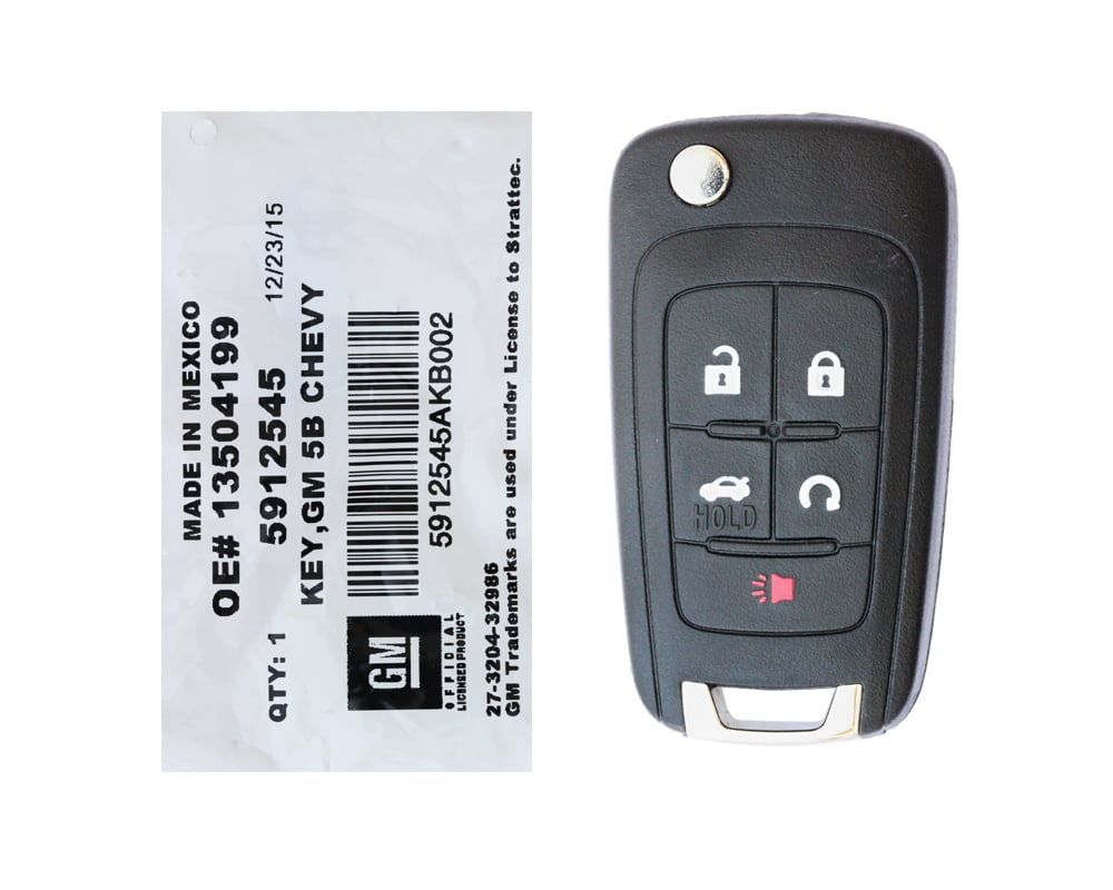 NEW Chevrolet Camaro Cruze Impala Equinox Malibu Sonic 2010-2019 Genuine Flip Remote key 5 Buttons 315MHz 5912545 STARTTEC 13504199 OEM, FCCID: AVL-B01T2AC