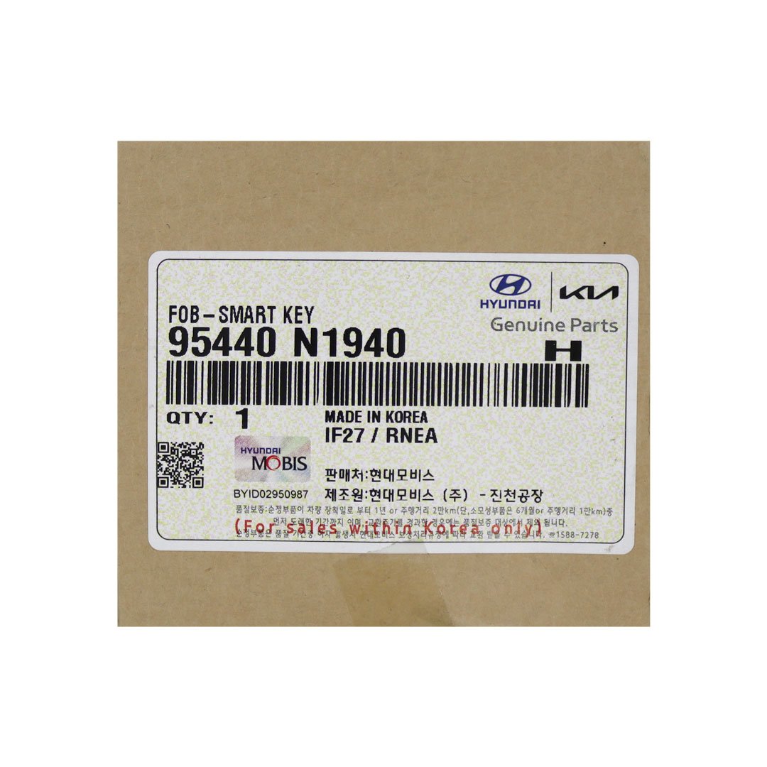 New Hyundai Grandeur 2023 Genuine / OEM Smart Remote 5 Buttons 433MHz OEM Part Number: 95440-N1940 / 95440N1940 FCC ID : TQ8-FOB-4F61U43