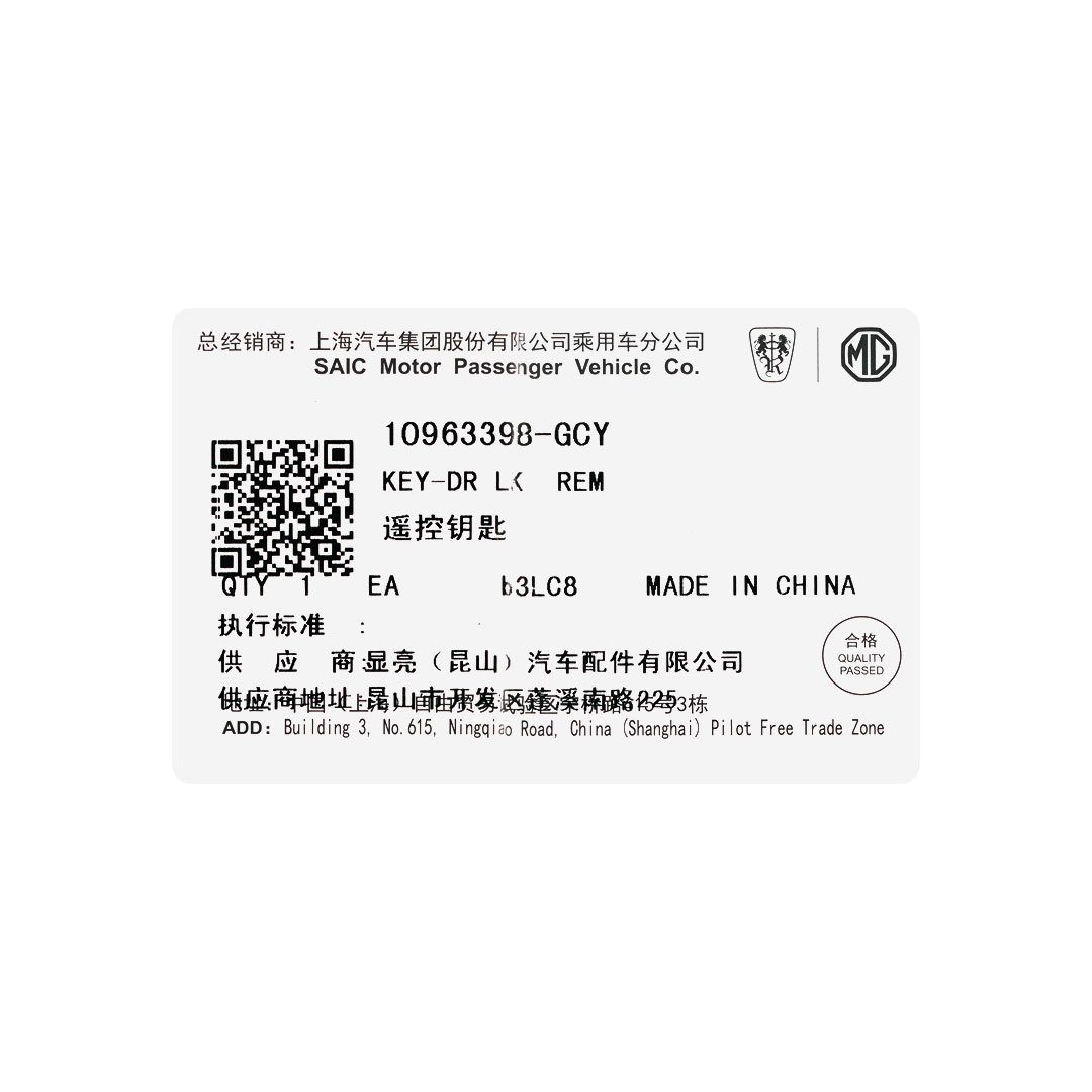 New MG HS Genuine / OEM Smart Remote Key 3 Buttons 433MHz OEM Part Number: 10963398-GCY Blue