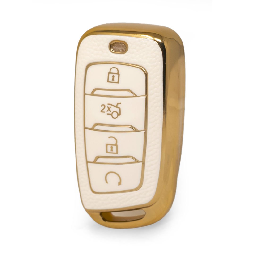 Nano High Quality Gold Leather Cover For Changan Remote Key 4 Buttons White Color CA-D13J