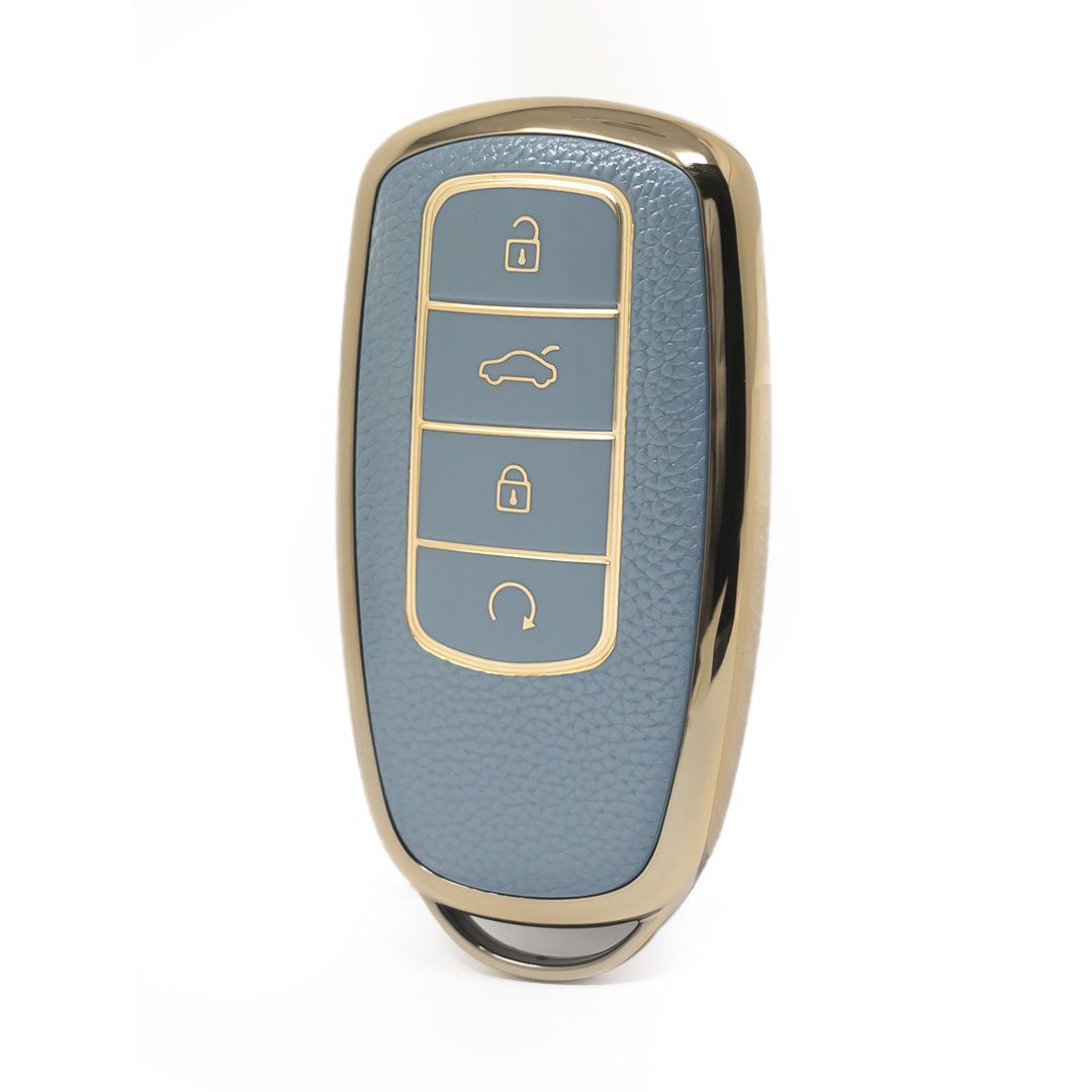 Nano High Quality Gold Leather Cover For Chery Remote Key 4 Buttons Gray Color CR-C13J