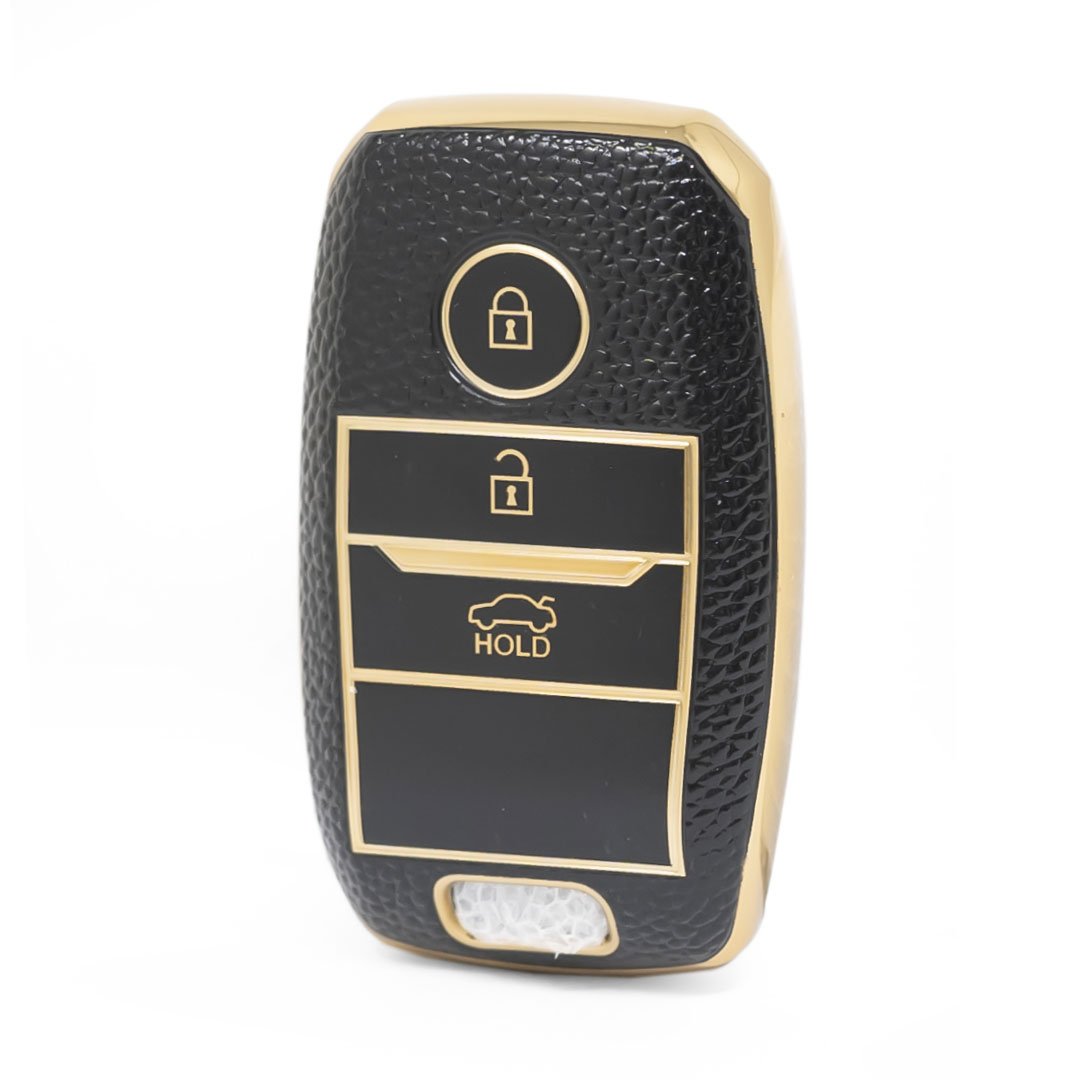 Nano High Quality Gold Leather Cover For KIA Remote Key 3 Buttons Black Color KIA-A13J