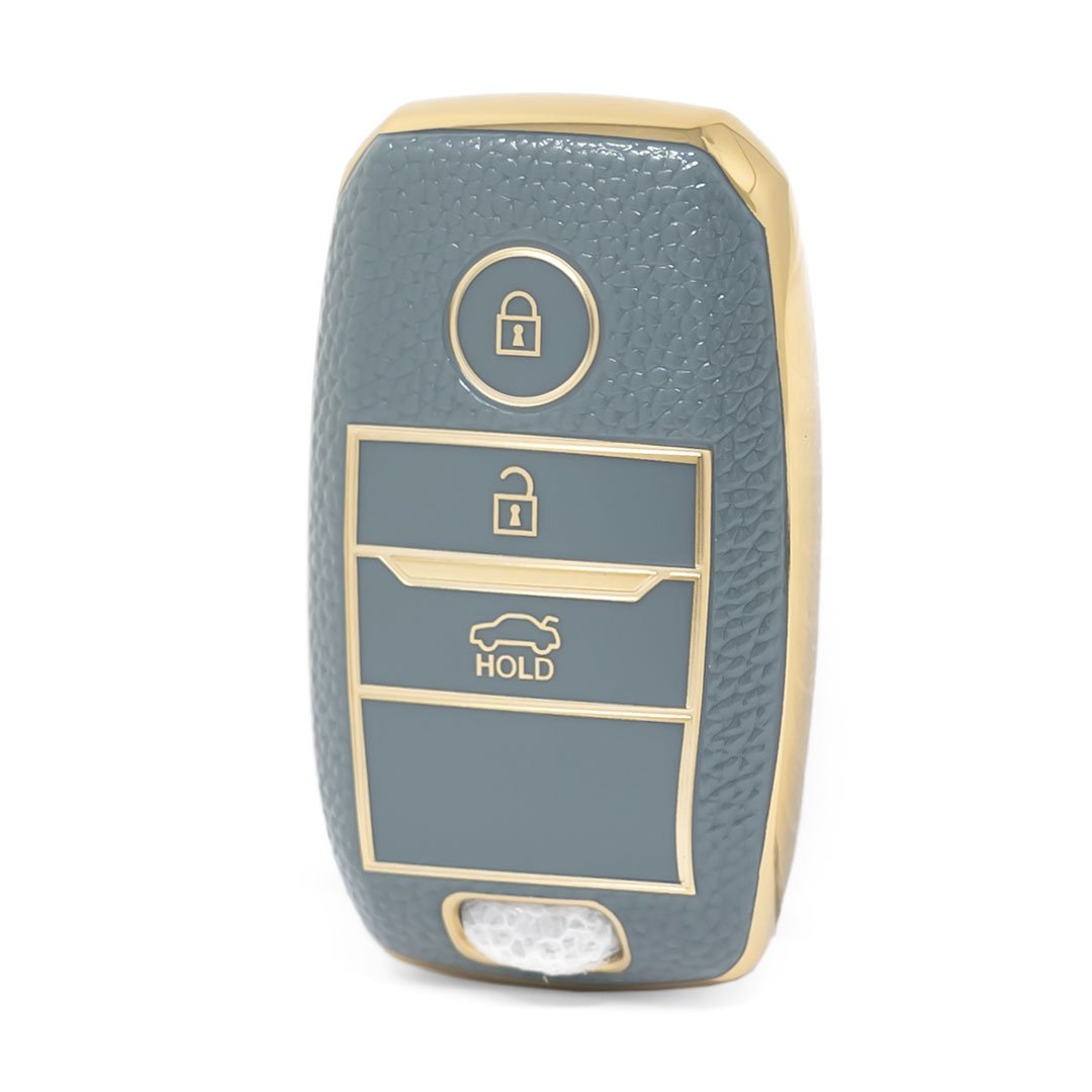 Nano High Quality Gold Leather Cover For KIA Remote Key 3 Buttons Gray Color KIA-A13J