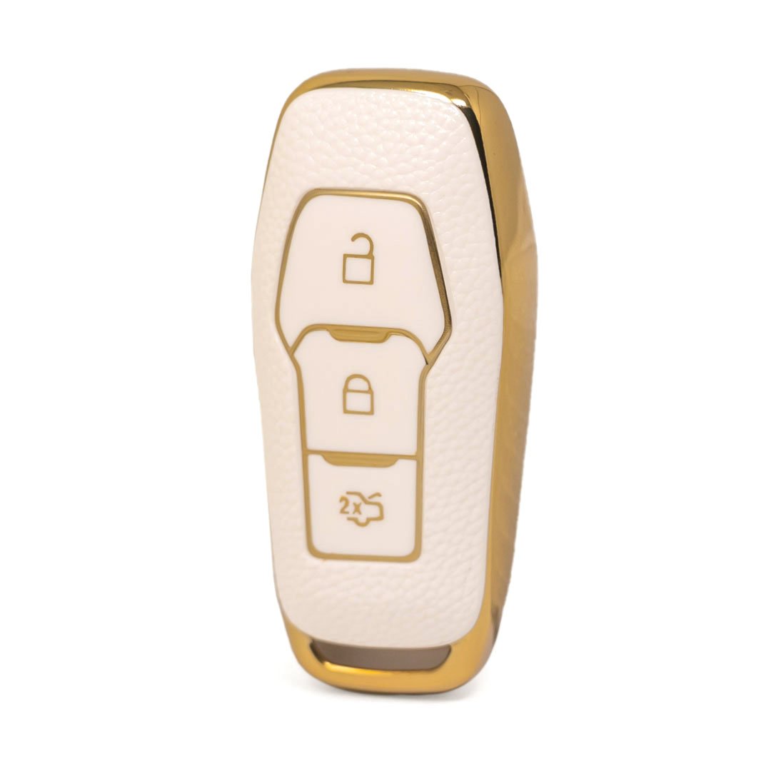 Nano High Quality Gold Leather Cover For Ford Remote Key 3 Buttons White Color Ford-C13J3