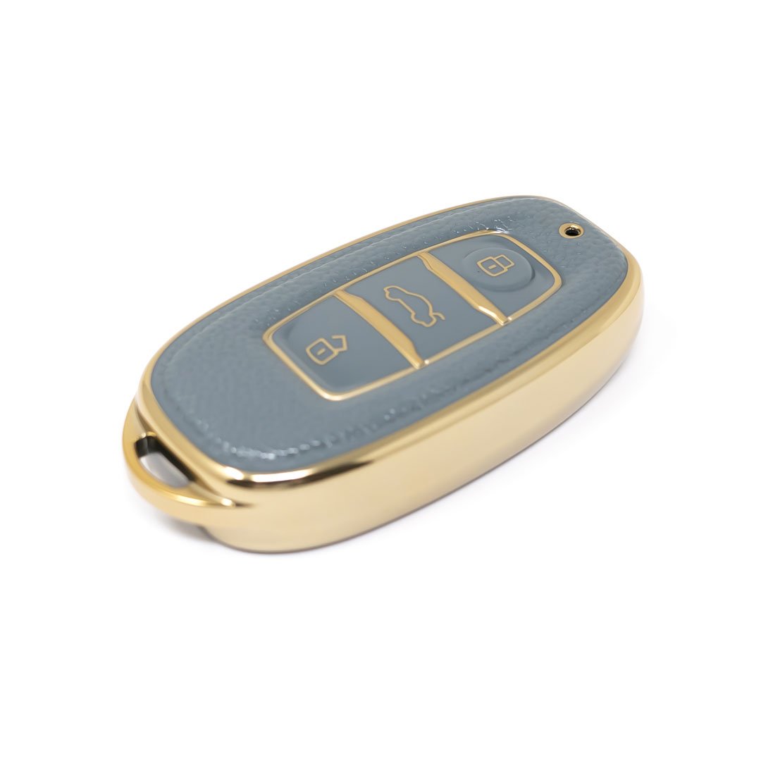 New Aftermarket Nano High Quality Gold Leather Cover For Hongqi Remote Key 3 Buttons Gray Color HQ-C13J