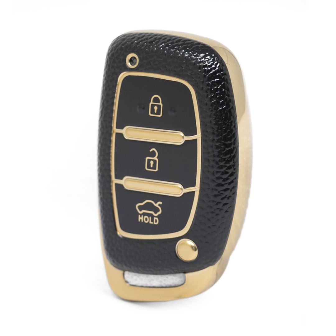 New Aftermarket Nano High Quality Gold Leather Cover For Hyundai Remote Key 3 Buttons Black Color HY-A13J3A