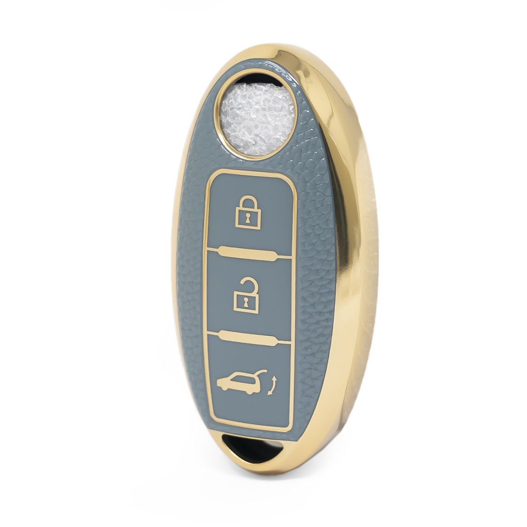 Nano High Quality Gold Leather Cover For Nissan Remote Key 3 Buttons Gray Color NS-A13J3B