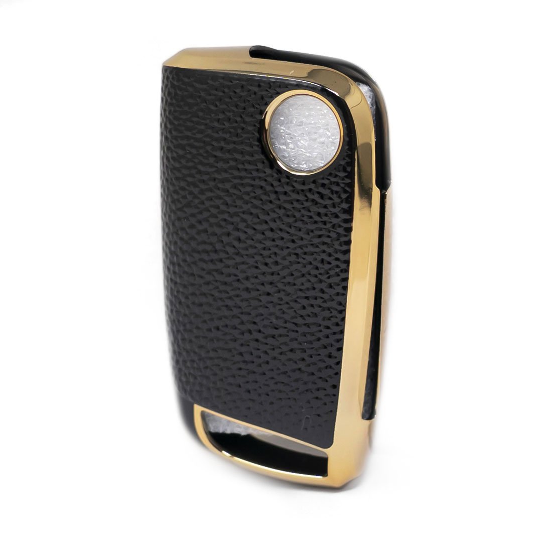New Aftermarket Nano High Quality Gold Leather Cover For Volkswagen Flip Remote Key 3 Buttons Black Color VW-E13J