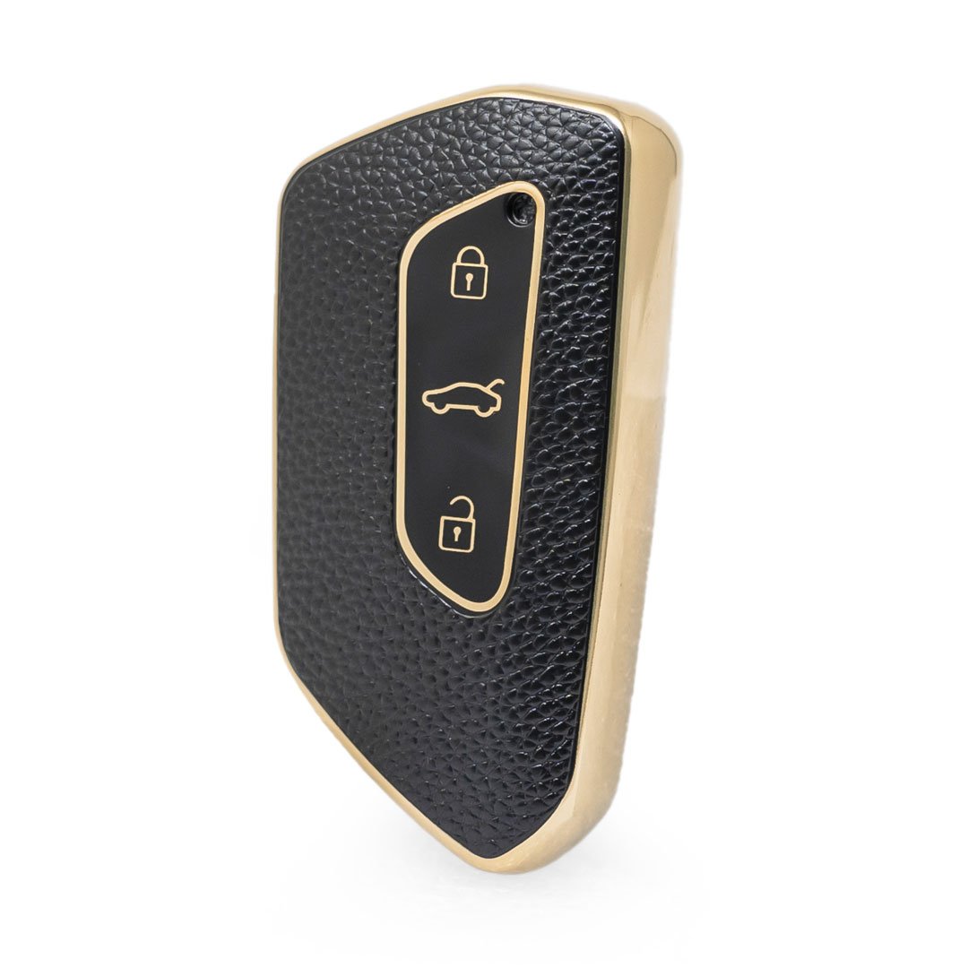 New Aftermarket Nano High Quality Gold Leather Cover For Volkswagen Remote Key 3 Buttons Black Color VW-G13J