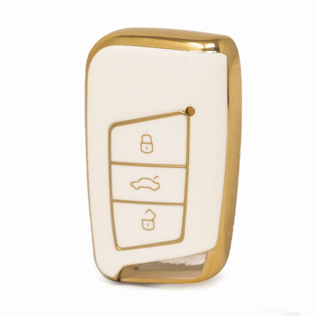 Nano High Quality Gold Leather Cover For Volkswagen Remote Key 3 Buttons White Color VW-D13J
