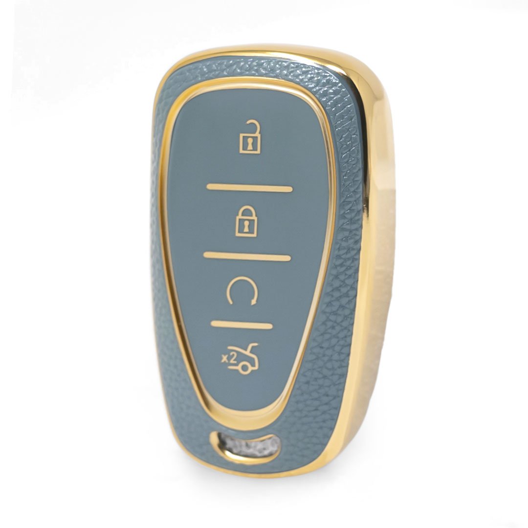 Nano High Quality Gold Leather Cover For Chevrolet Remote Key 4 Buttons Gray Color CRL-B13J4