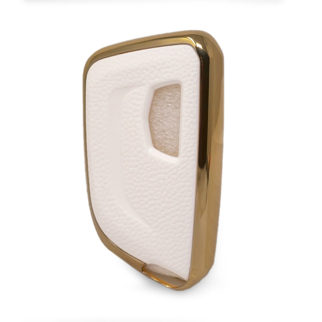 New Aftermarket Nano High Quality Gold Leather Cover For Cadillac Remote Key 5 Buttons White Color CDLC-B13J