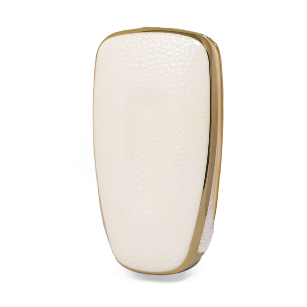 Nano High Quality Gold Leather Cover For Ford Flip Remote Key 3 Buttons White Color Ford-E13J