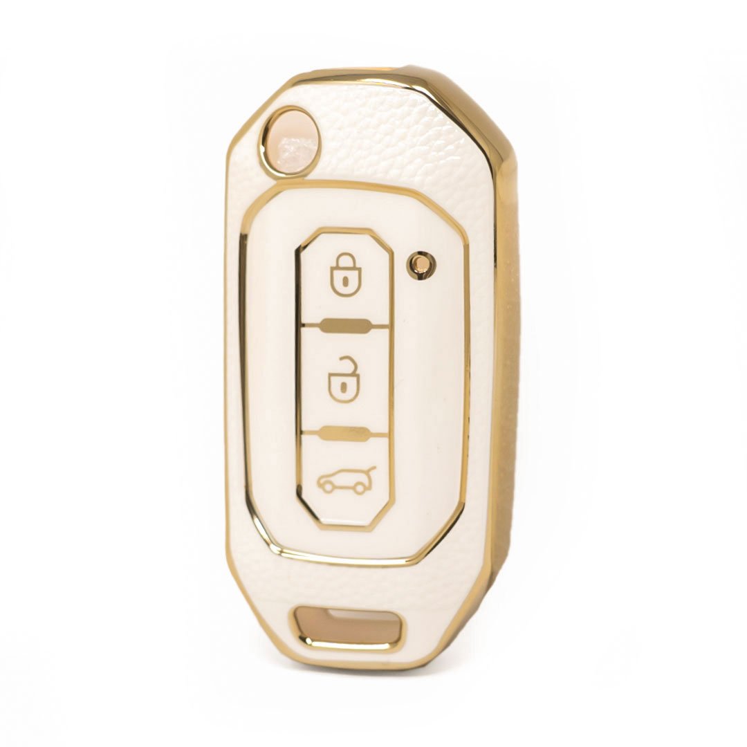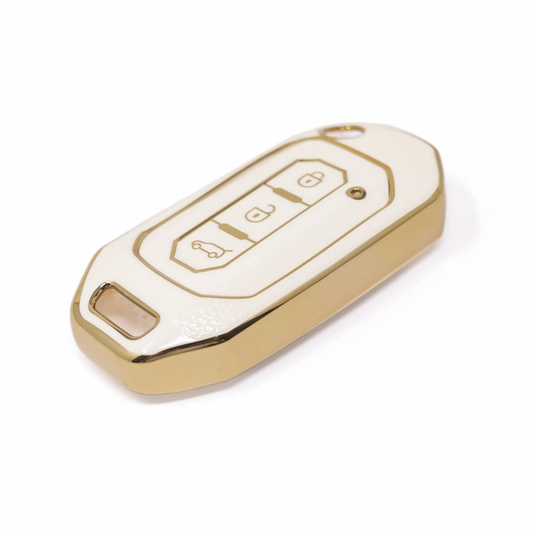 Nano High Quality Gold Leather Cover For Ford Flip Remote Key 3 Buttons White Color Ford-I13J