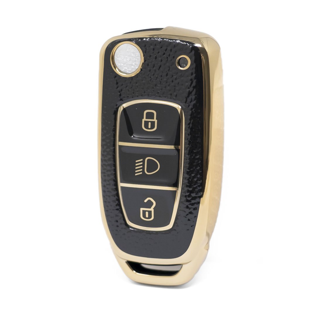 New Aftermarket Nano High Quality Gold Leather Cover For TATA Remote Key 3 Buttons Black Color TATA-B13J