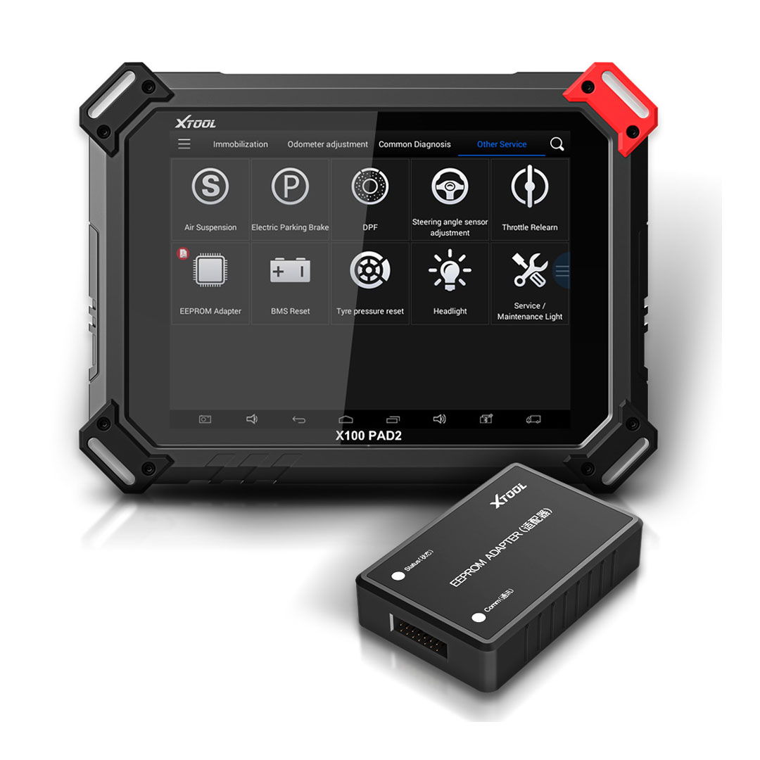 X-100 Pad 2 A Tablet With The Newest Technologies To Perform Key Programming, Mileage Adjustment, Oil Service Light Reset, Timing Belt Service Light Reset, Tire Pressure Red Light Reset, EPB Reset, Throttle Body Reset, DPF Reset, Battery Reset, Steering Angle Calibration, And OBDII Engine Diagnosis.