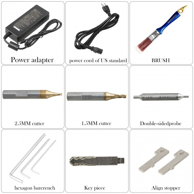 With micro-adjust probe, Spring preloading type fine-tuning structure, ensure cutting accuracy with this structure it can position the original key in advance, in case the spring vibrating caused cutting error, good for accuracy