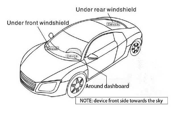 2.1) lato frontale del dispositivo verso il cielo. Quando si installa in auto, se il