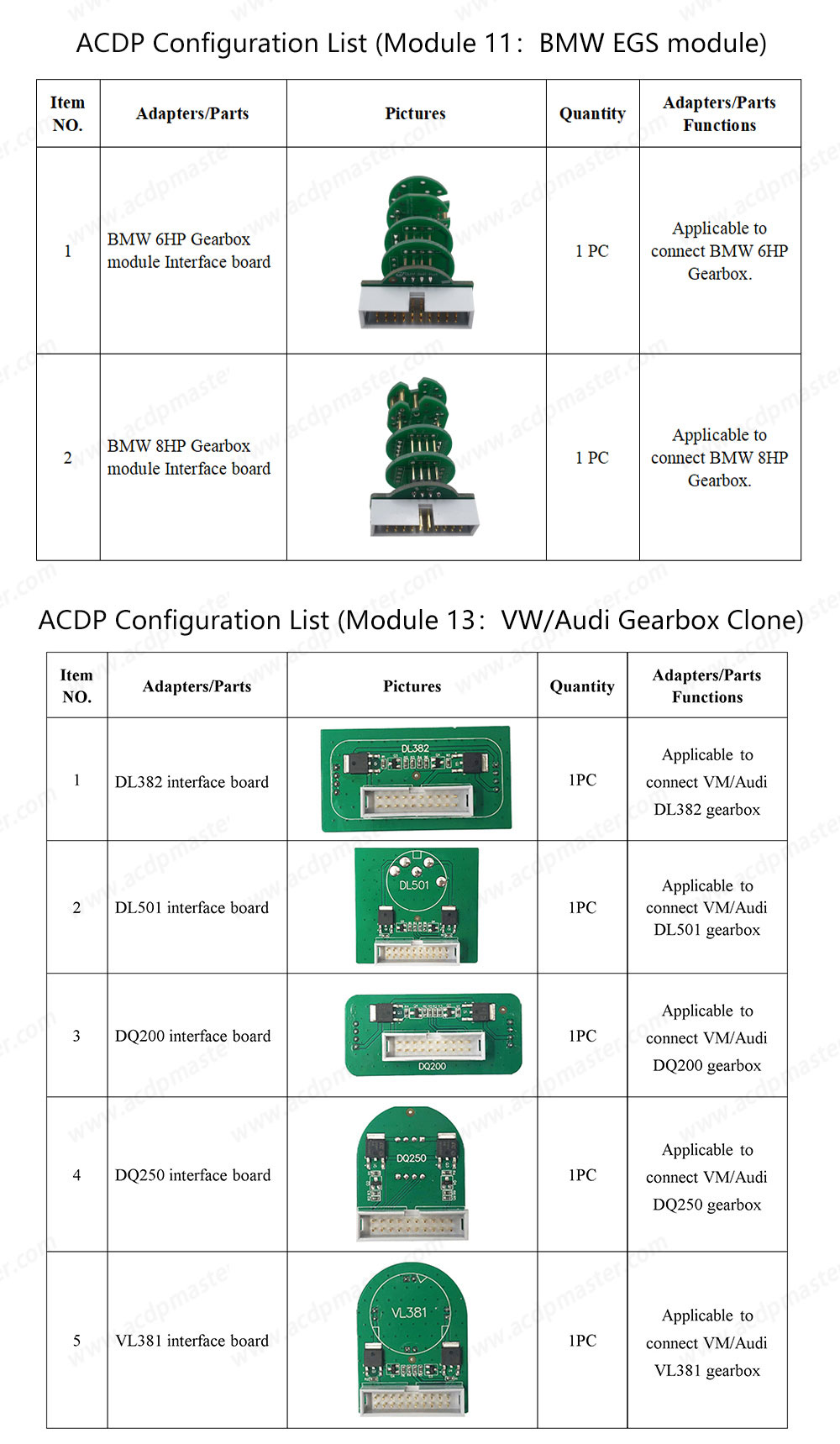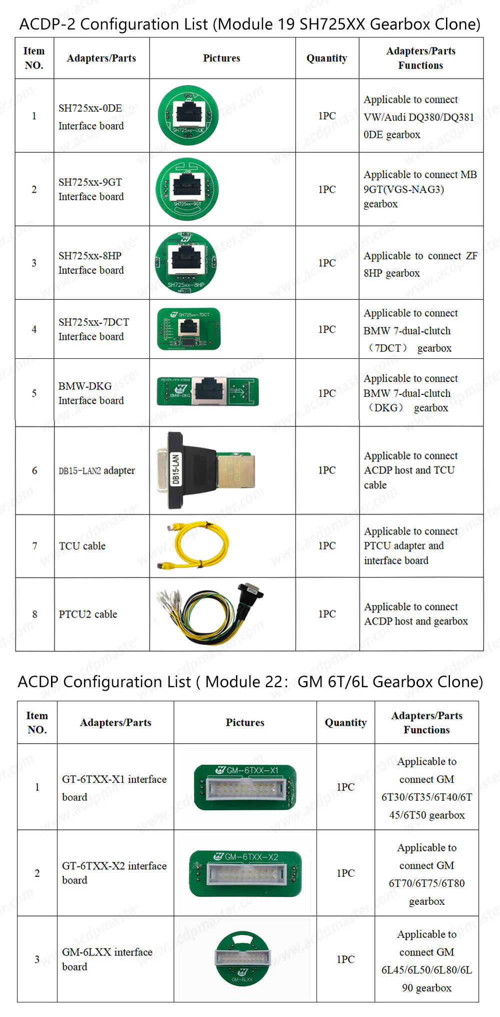 Yanhua Mini ACDP 2 - Gearbox Package Specs: