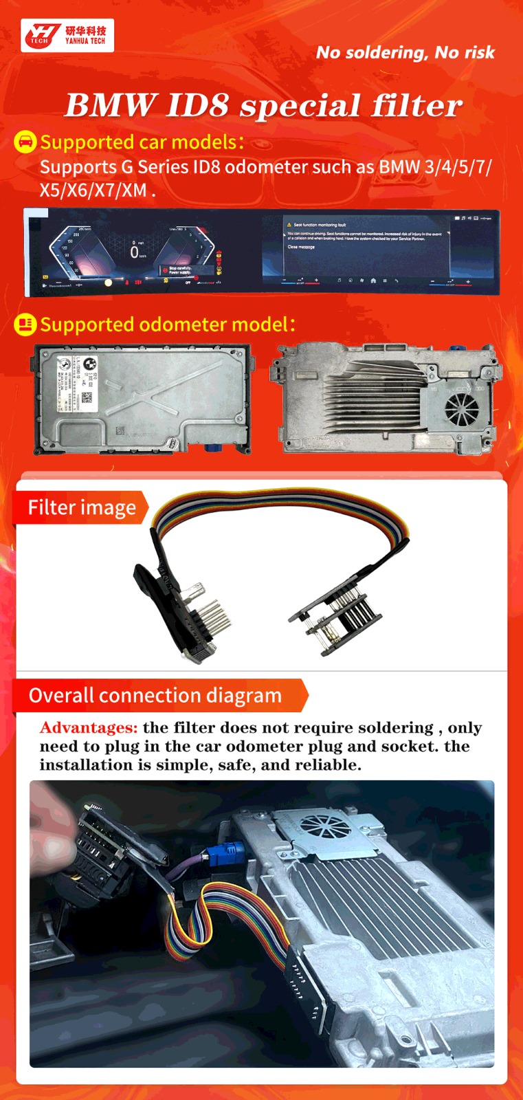 Yanhua special filter for BMW ID8 is applicable to BMW 3/4/5/7/X5/X6/X7/XM and other G chassis ID8 meter mileage repair.