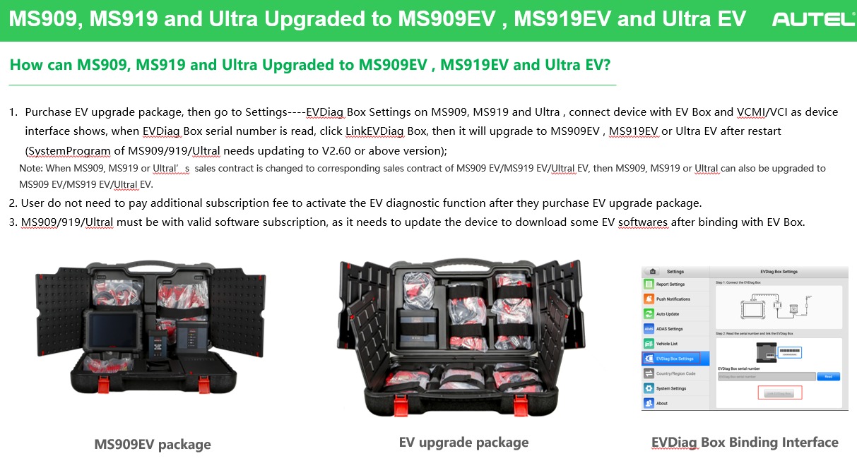 Autel Ultral EV Diagnostics Upgrade Kit includes EVDiag Box