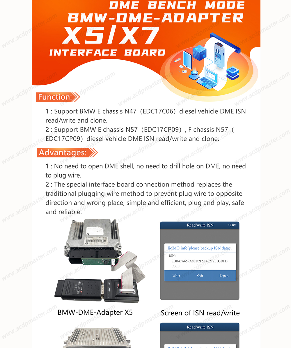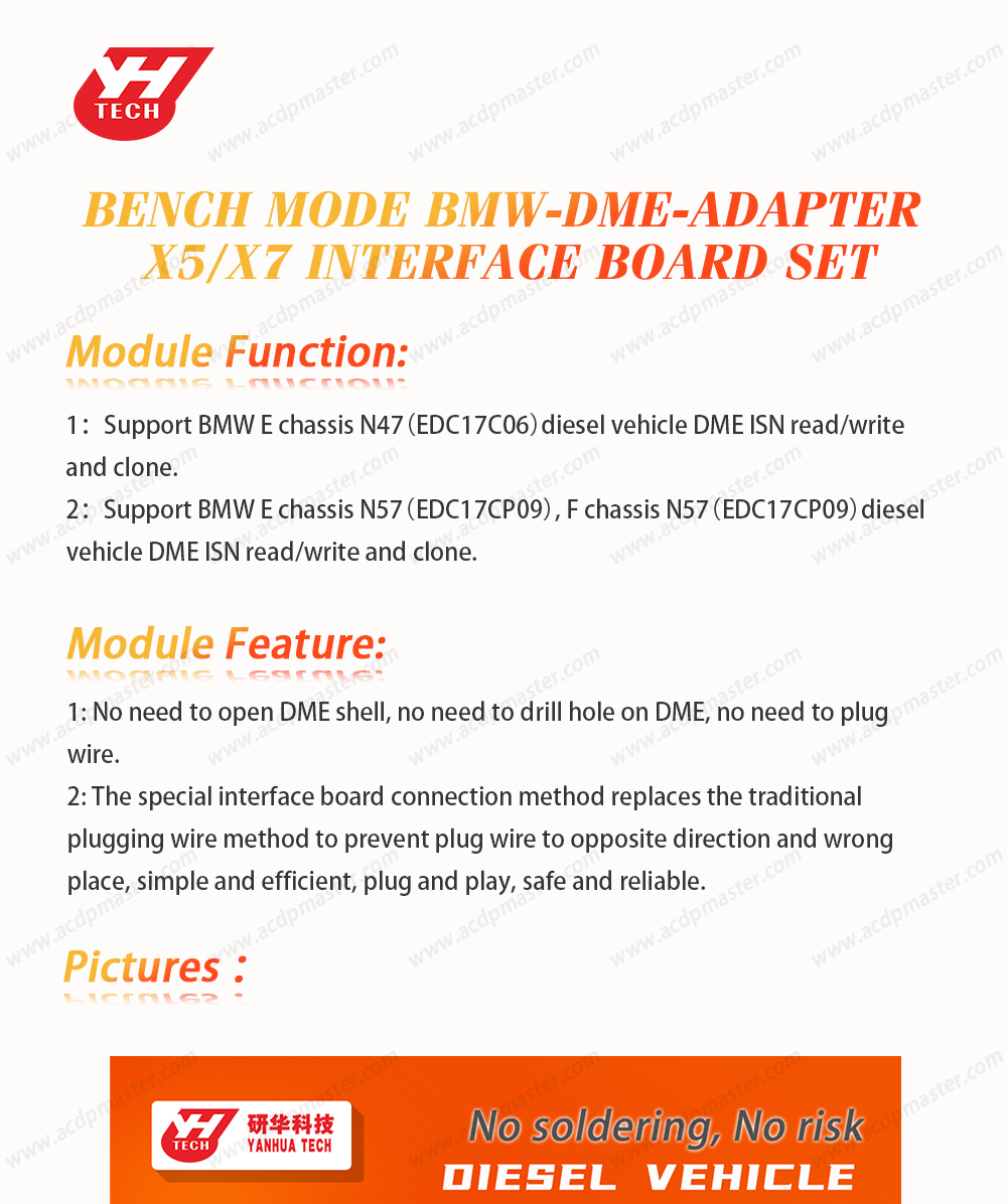 NEW Yanhua ACDP BMW X5/X7 Bench Interface Board for BMW N47/N57 Diesel DME ISN Read / Write and Clone