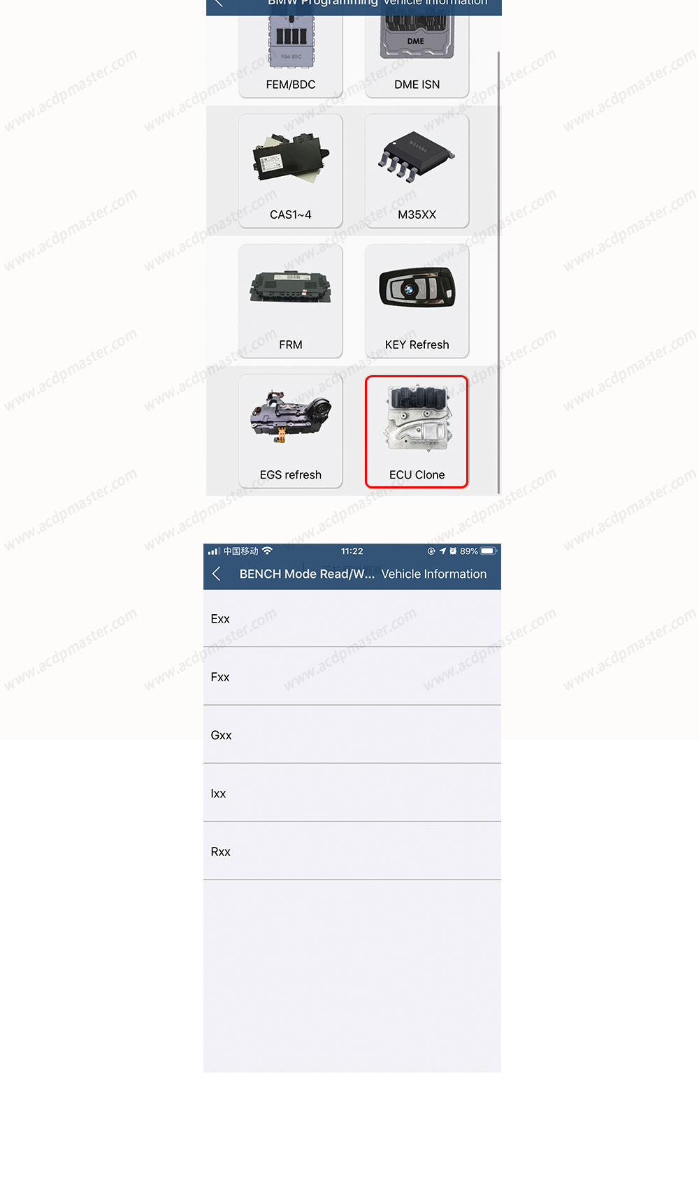 Support BMW E chassis N47/N57,F chassis N57 diesel DME ISN read/write and clone.