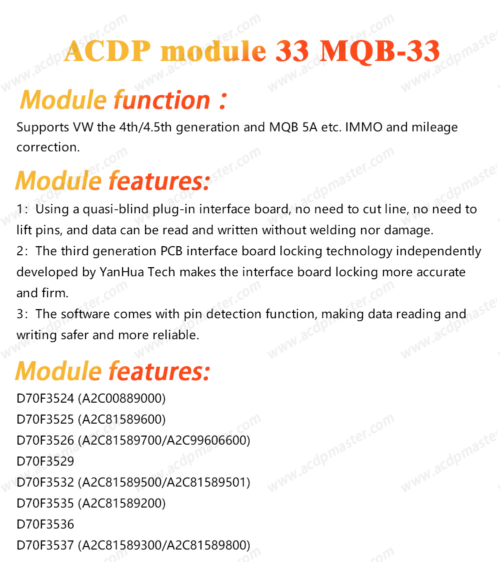 Module 33 work with both Mini ACDP and ACDP-2. ACDP hardware is not included.
