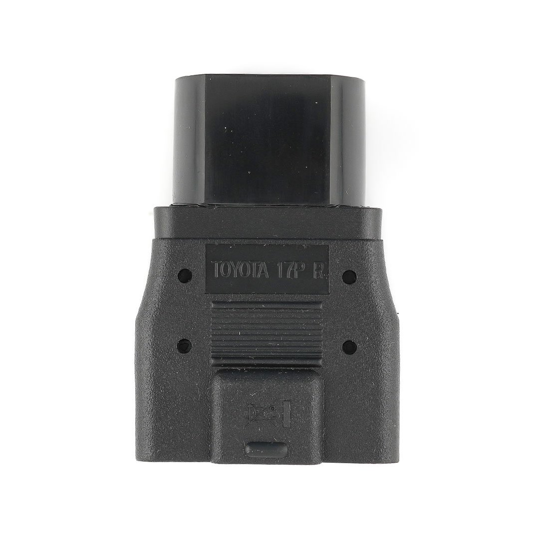 Adaptador redondo Zenith Toyota 17P utilizado para la comunicación con automóviles Toyota y Lexus antiguos con conector de diagnóstico de tipo "redondo (semicircular)" de 17 pines. Tiene la misma apariencia que el adaptador Mazda 17p. Asegúrese de verificar el nombre grabado en la superficie.