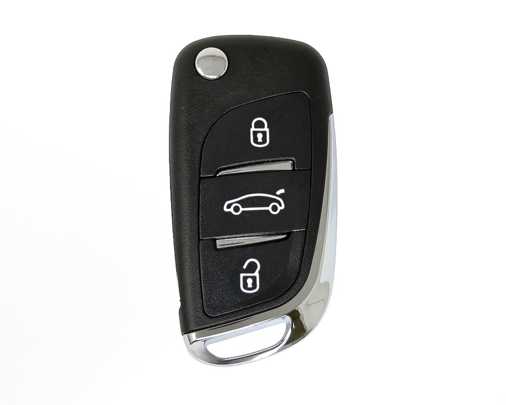 Peugeot Flip Remote Key Shell Chrome 3 Bouton avec support de batterie modifié