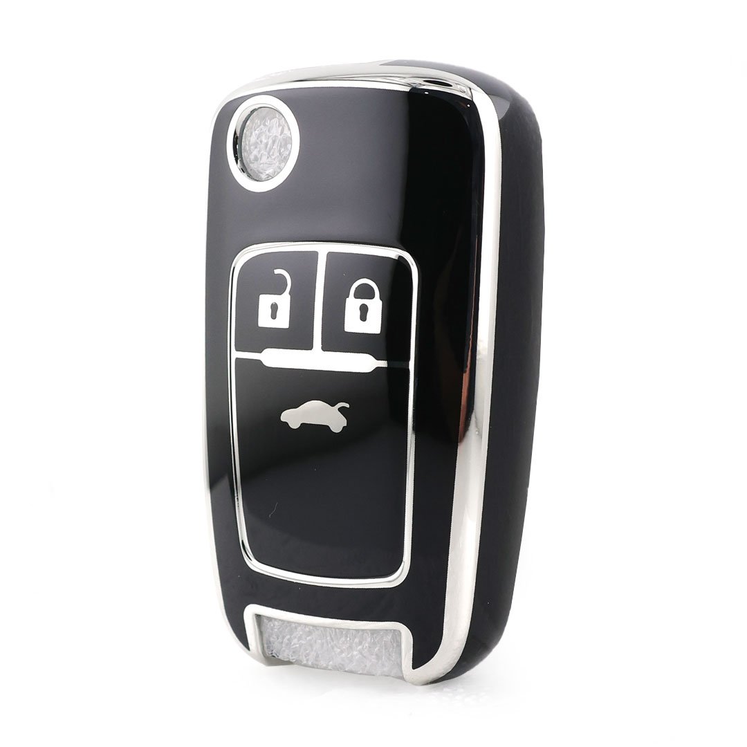 Coque Nano haute qualité pour clé télécommande Chevrolet 3 boutons, couleur noire, cadre argenté CRL-A11Y3