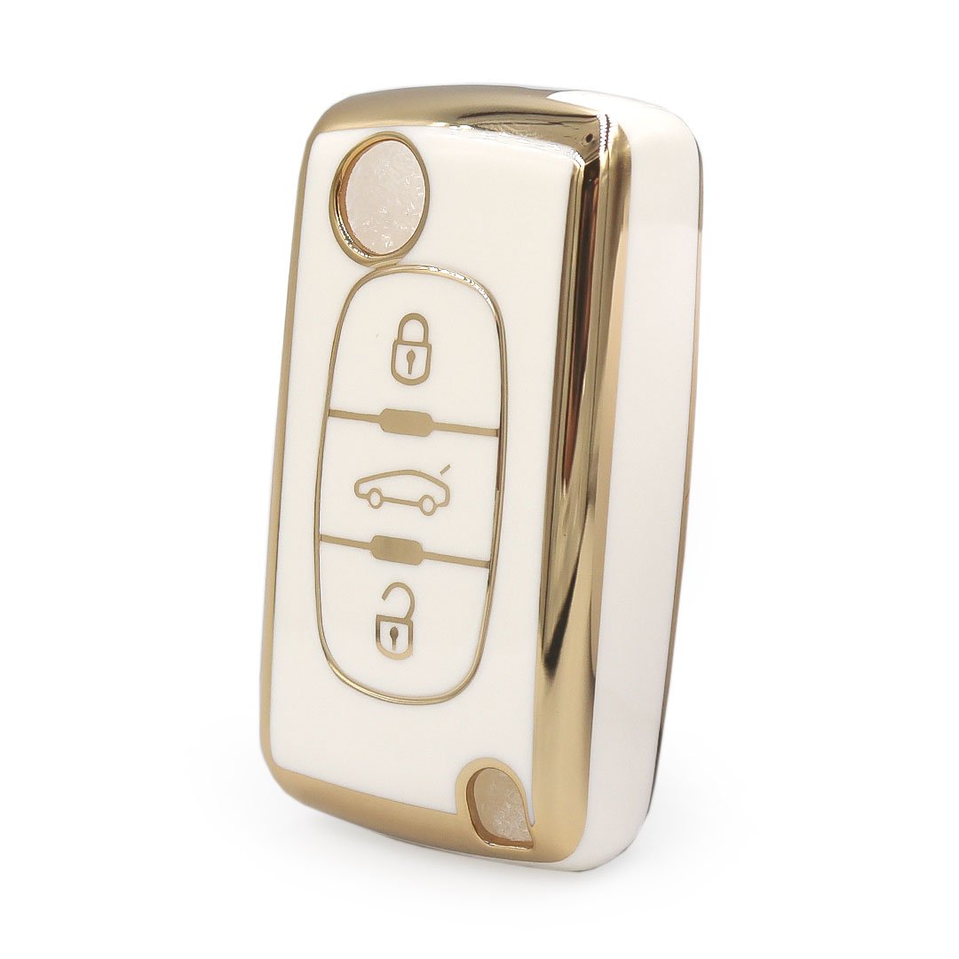 Нано крышка высокого качества для дистанционного ключа Пежо 3 кнопки белого цвета