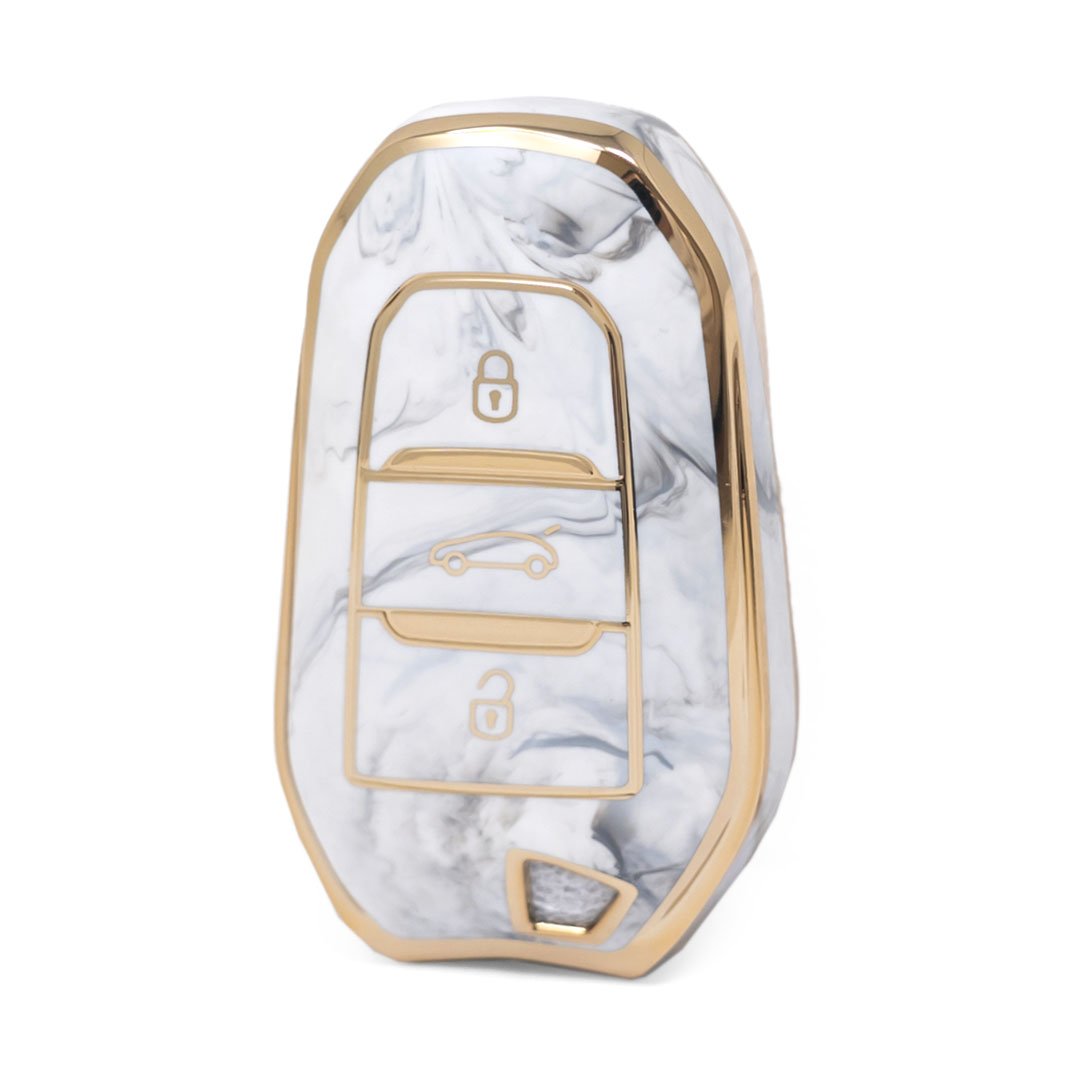 Нано-высококачественный мраморный чехол для дистанционного ключа Peugeot с 3 кнопками белого цвета PG-A12J