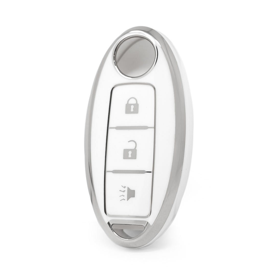 Нано Высококачественный Чехол Для Дистанционного Ключа Nissan 3 Кнопки Белый Цвет Серебряная Рамка NS-A11Y3A